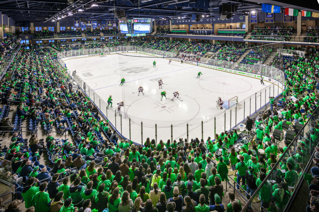 Get a discount on single-game tickets when you bring a group 15+ people out to the Compton Family Ice Arena! Other opportunities and experiences may be available. Click the button below to signup to receive more information when tickets go on sale. Questions? Please call/text us at (574) 631-7356 or email: ndsales@nd.edu