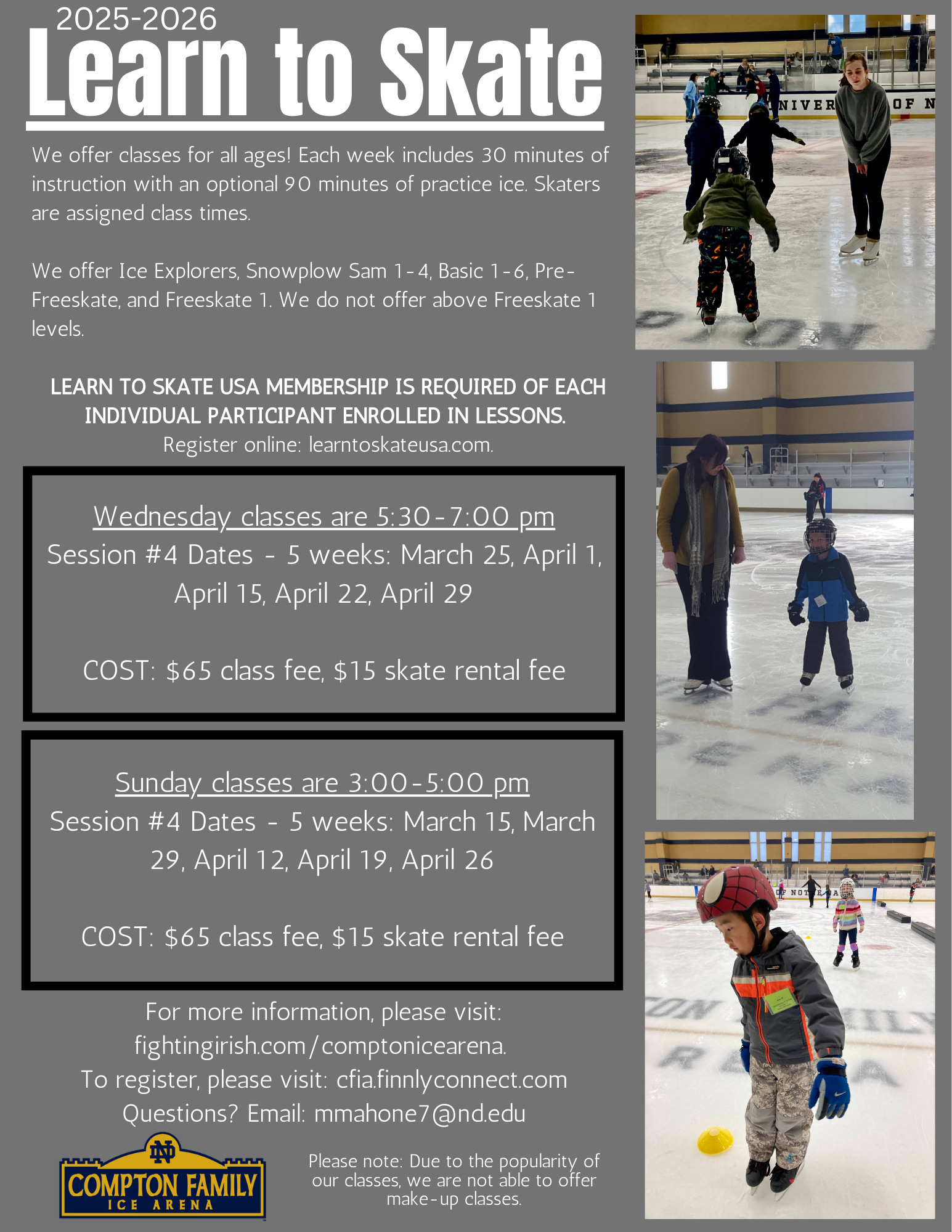 Spring 2026 Learn to skate #4 online registration opens February 19th!