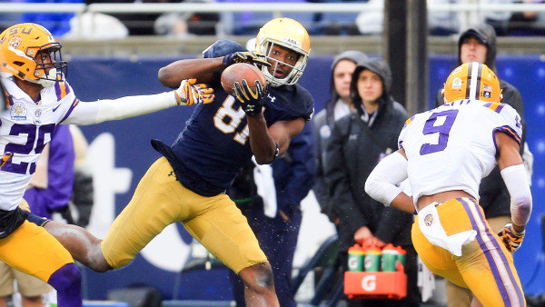 So there’s a sense that the junior University of Notre Dame football wide receiver remains a bit uncomfortable in the spotlight, even four weeks after his amazing, one-handed catch that essentially provided the margin for Irish victory in the Citrus Bowl.